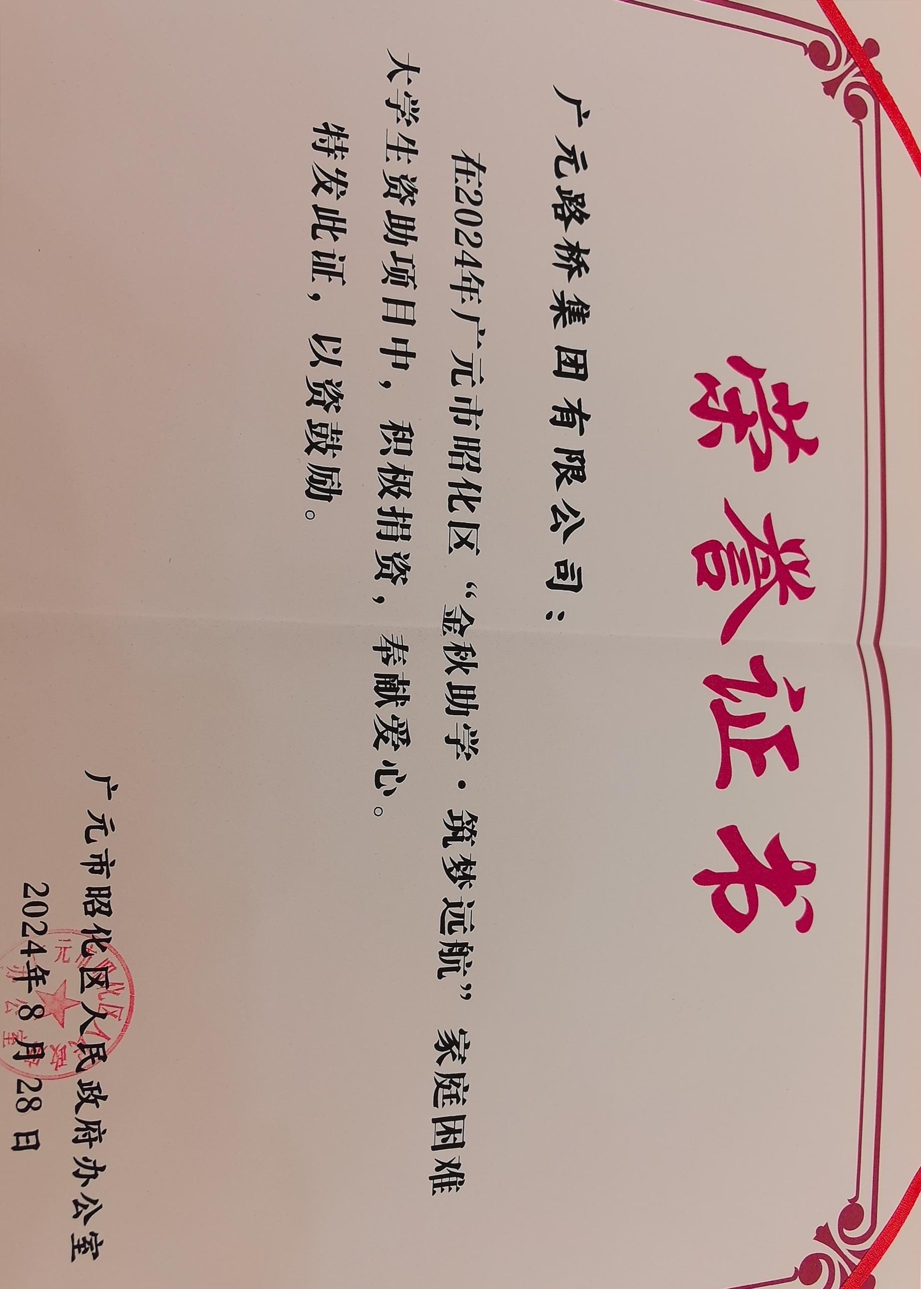 8月28日,昭化區(qū)舉行2024年“金秋助學(xué)·筑夢遠航”家庭困難大學(xué)生資助儀式,路橋集團作為資助企業(yè)參會并獲得表彰。